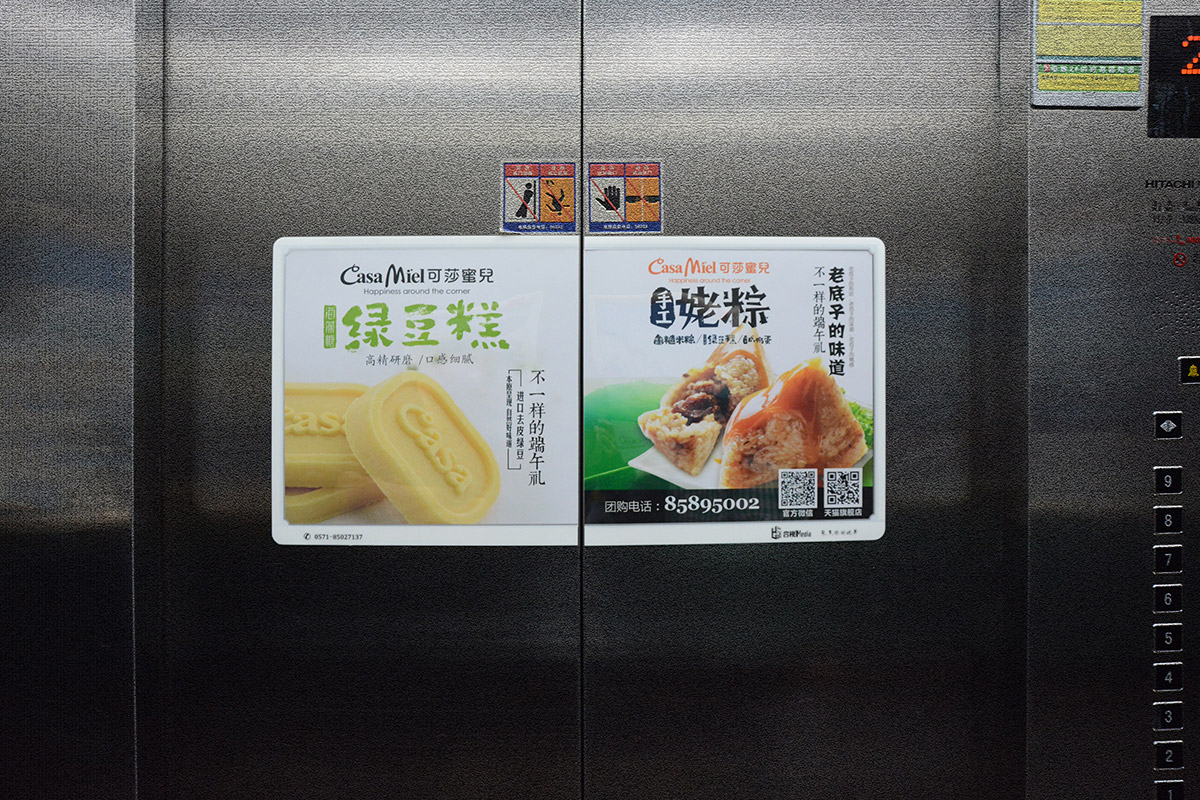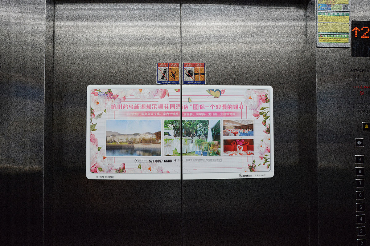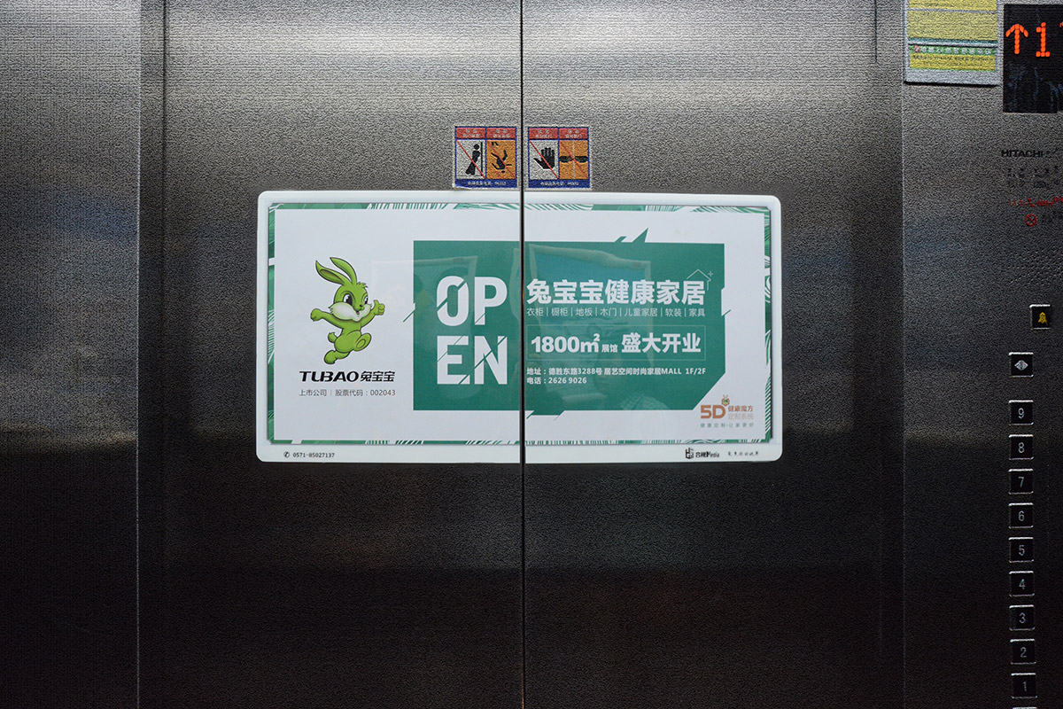 电梯门框架,处于核心阅读视野内, 是所有人视野无法回避的。