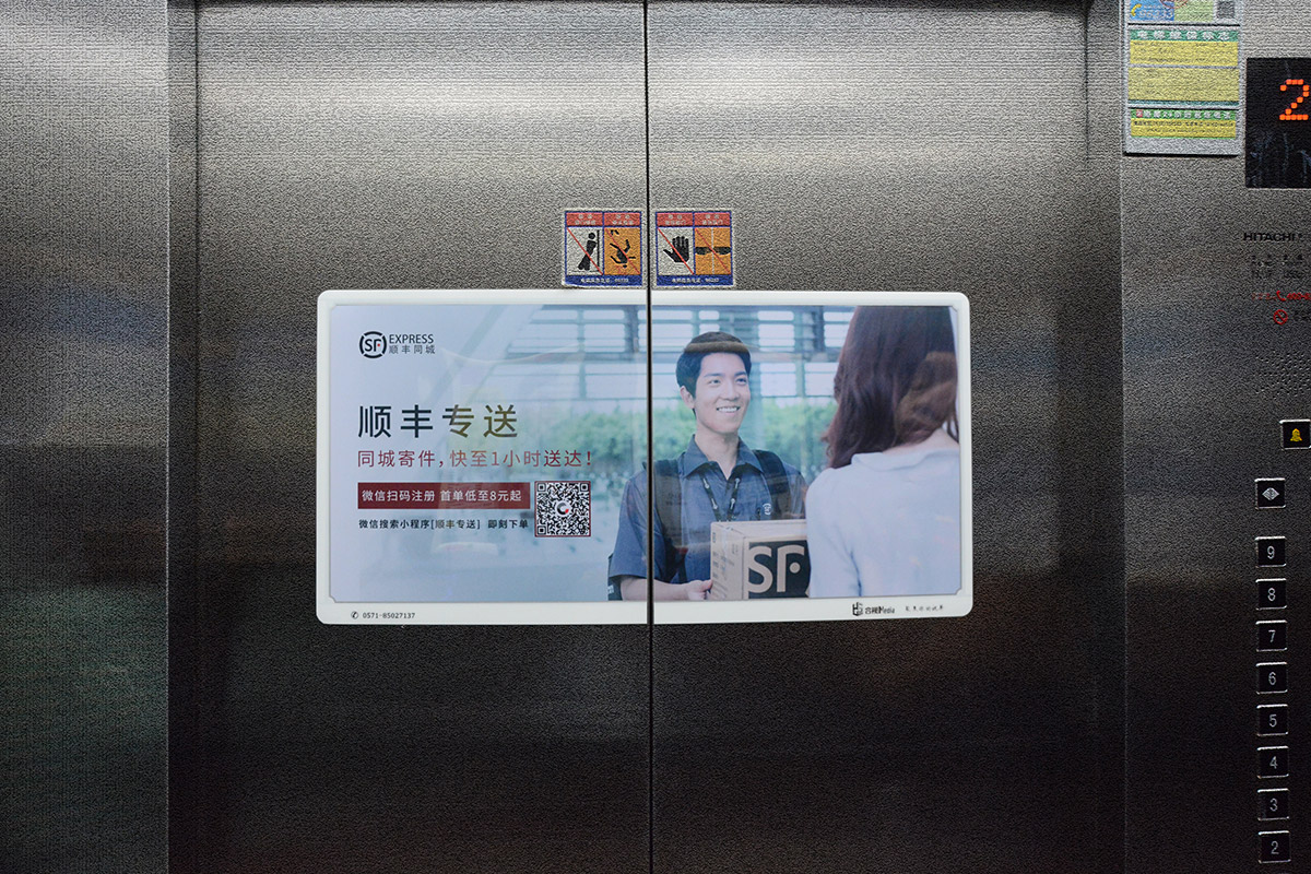 平均每人每天会乘坐4次电梯,广 告是高频次被浏览的广告。